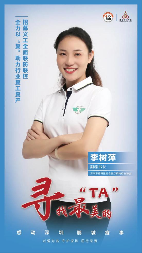 深圳市福田區(qū)社會醫(yī)療機構(gòu)行業(yè)協(xié)會副秘書長李樹萍,在區(qū)衛(wèi)生局的幫助下,早在1月16日即率先組織了福田轄區(qū)約250家社會辦醫(yī)機構(gòu)的防疫應(yīng)急培訓(xùn),為后續(xù)的科學(xué)防控打下了扎實基礎(chǔ)。疫情關(guān)鍵時期,社區(qū)防控一線醫(yī)務(wù)人員力量嚴重不足,李樹萍帶領(lǐng)團隊聯(lián)合黨委和行業(yè)協(xié)會發(fā)起志愿者招募。歷時3個工作日共招募到196名志愿者,培訓(xùn)后符合要求上崗聯(lián)防聯(lián)控的123名志愿者,總服務(wù)時長達4555小時。