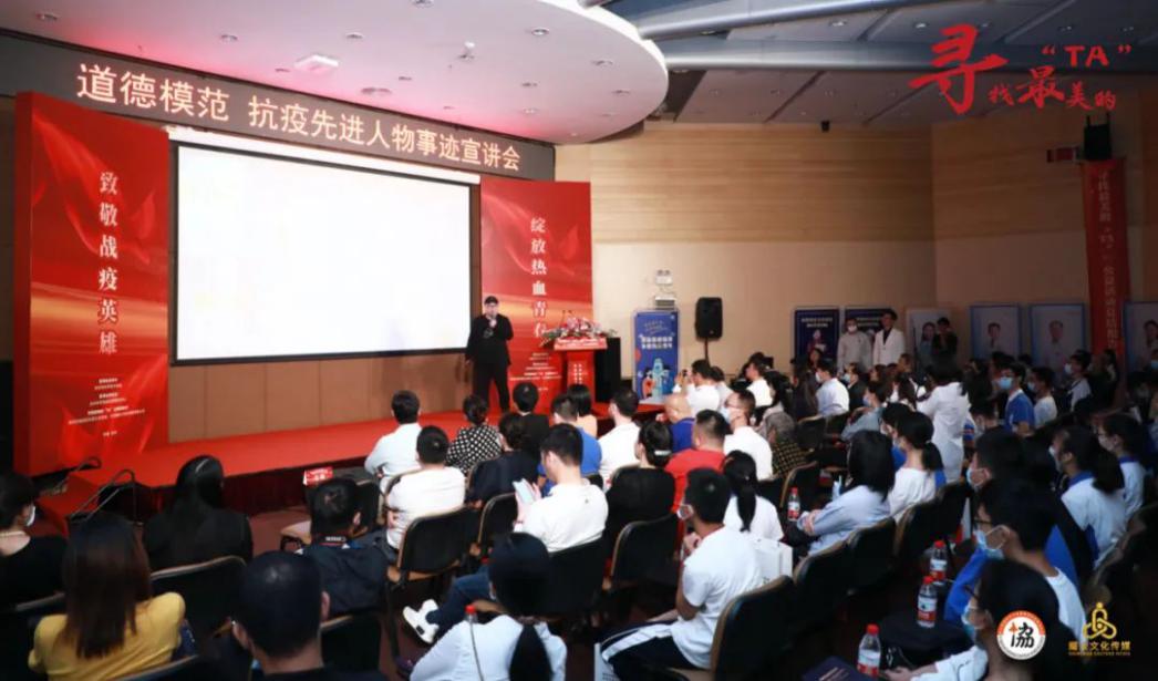 隨后的抗疫先進人物事跡宣講會中,深圳市第二人民醫(yī)院院感科主任吳明為我們揭秘院感人是如何奔走穿梭于每個角落,對全院感染防控工作進行培訓(xùn)、指導(dǎo)、監(jiān)督和檢查,并取得所有醫(yī)護人員“零感染”的優(yōu)秀戰(zhàn)績;深圳市社聯(lián)社工服務(wù)中心中級督導(dǎo)吳巧敏講述她如何為心靈戴上“口罩”,守護生命不斷線的動人故事;深圳市南山區(qū)民營醫(yī)療機構(gòu)協(xié)會會長趙海峰匯報了民營醫(yī)療機構(gòu)迎難而上、積極作為,新時代背景下社會辦醫(yī)的深厚情懷及責(zé)任擔(dān)當(dāng)。三位抗疫先進人物為我們詮釋了戰(zhàn)疫逆行的“責(zé)任”和“擔(dān)當(dāng)”。