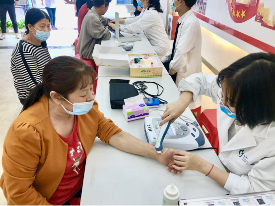 活動現(xiàn)場,社區(qū)居民聞訊而至,向醫(yī)務(wù)工作人員咨詢各種保健知識和健康問題,通過測量血壓、中醫(yī)學(xué)全息四診(望、聞、問、切)等形式。
