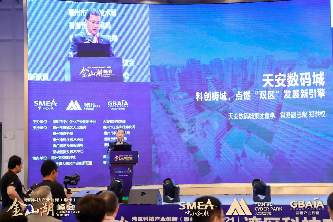 昨日,由深圳市中小企業(yè)產(chǎn)業(yè)創(chuàng)新協(xié)會(huì)、天安數(shù)碼城集團(tuán)聯(lián)合主辦的“雙區(qū)驅(qū)動(dòng)·深度融灣”2021首屆灣區(qū)科技產(chǎn)業(yè)創(chuàng)新(惠州)金山湖峰會(huì)在惠州市惠城區(qū)康帝國(guó)際酒店如期舉行。本次峰會(huì)得到了惠州市惠城區(qū)人民政府、惠州市工業(yè)和信息化局、惠州市商務(wù)局、惠州市科學(xué)技術(shù)局、惠州市科學(xué)技術(shù)協(xié)會(huì)、香港貿(mào)易發(fā)展局、澳門貿(mào)易投資促進(jìn)局、香港生產(chǎn)力促進(jìn)局深圳創(chuàng)新及技術(shù)中心的大力支持。出席本屆峰會(huì)的嘉賓包含政府部門領(lǐng)導(dǎo)、上市公司董事長(zhǎng)、大灣區(qū)各行業(yè)領(lǐng)域龍頭企業(yè)負(fù)責(zé)人、專家學(xué)者、專業(yè)聽眾等超500余人,一同見證了“深莞惠科技協(xié)作與創(chuàng)新服務(wù)合作平臺(tái)”簽約以及《灣區(qū)產(chǎn)業(yè)聯(lián)盟(惠州)科技創(chuàng)新展示中心》的正式啟動(dòng)。