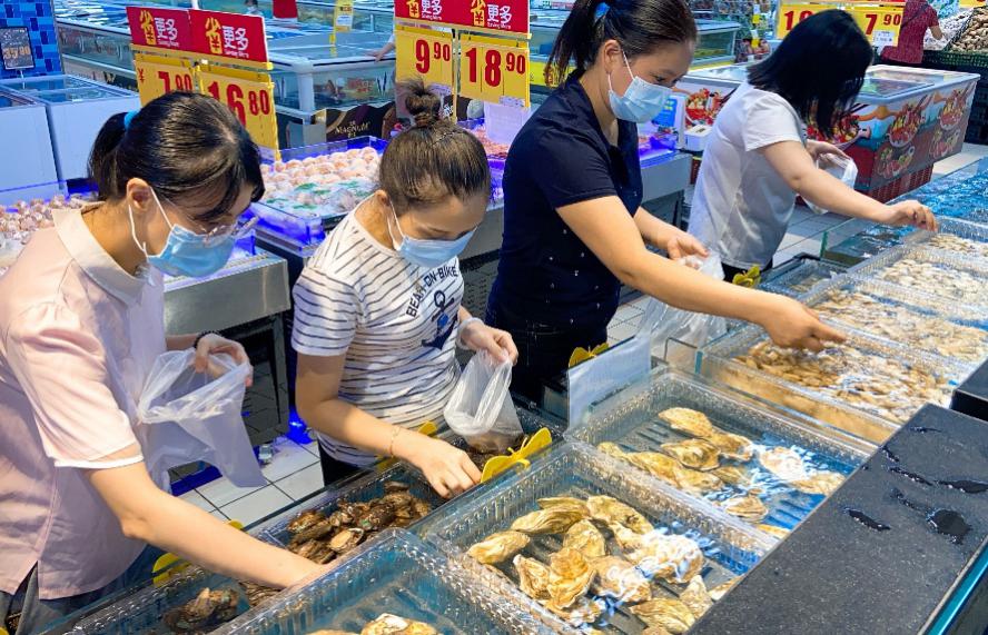 (圖:顧客在家樂福深圳紅寶店內(nèi)選購(gòu)海鮮產(chǎn)品)