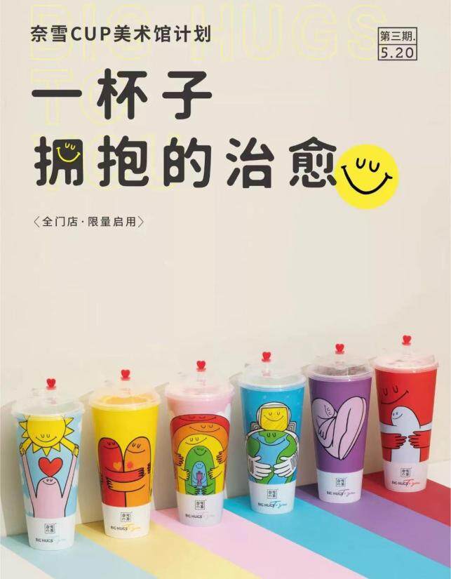 沒(méi)有財(cái)大氣粗的“品牌集郵”,也沒(méi)有投機(jī)取巧的抖機(jī)靈,奈雪似乎一直都深諳情感營(yíng)銷的法門(mén),過(guò)往也不乏優(yōu)質(zhì)案例。筆者印象最深的是“CUP美術(shù)館計(jì)劃”中的“瑞獸杯”和“抱抱杯”。前者是在2020與2021新舊年相交之際推出的,以茶飲杯為載體推出六款意頭極好的瑞獸,寓意“瑞獸相伴時(shí)來(lái)運(yùn)轉(zhuǎn)”,與消費(fèi)者新年新氣象的希冀不謀而合。