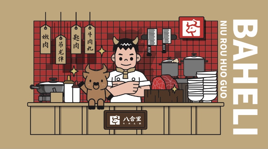 “這只神秘的牛牛小精靈,跟阿平是很好的拍檔?!薄放艻P“小八”身著廚師服裝,整體造型卡通可愛,一亮相便吸睛無數(shù)。這也是八合里首次將品牌IP從一個(gè)卡通圖形變成為一個(gè)有身份有個(gè)性的“生命體”——不僅將品牌理念滲透到整個(gè)業(yè)務(wù)鏈條中,衍生出專屬表情包文化、傳遞品牌個(gè)性主張,讓人眼前一亮記憶深刻,更是成功地進(jìn)一步融入年輕人族群,所建立的品牌認(rèn)同感就像一股無形的力量拉近了與粉絲“八粉”的距離,點(diǎn)燃品牌年輕化新勢能。