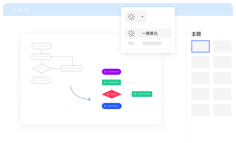 為了賦能繪圖效率,億圖圖示11.0版本還新增了“一鍵美化”功能,進一步提升產(chǎn)品的易用性,真正做到“把簡單留給用戶,把復雜留給自己”。