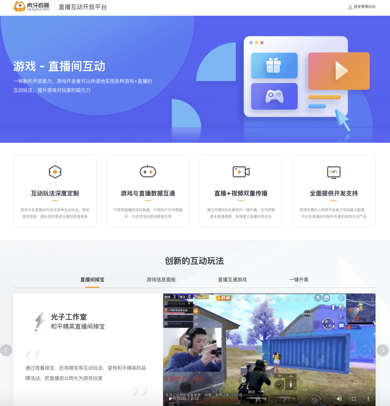 今年3月,虎牙直播互動(dòng)開(kāi)放平臺(tái)正式上線。通過(guò)開(kāi)放平臺(tái)提供的七大核心開(kāi)放能力,游戲廠商可以獲得完善的小程序開(kāi)發(fā)能力和AI能力配套,快速實(shí)現(xiàn)各種“游戲+直播”的互動(dòng)玩法。