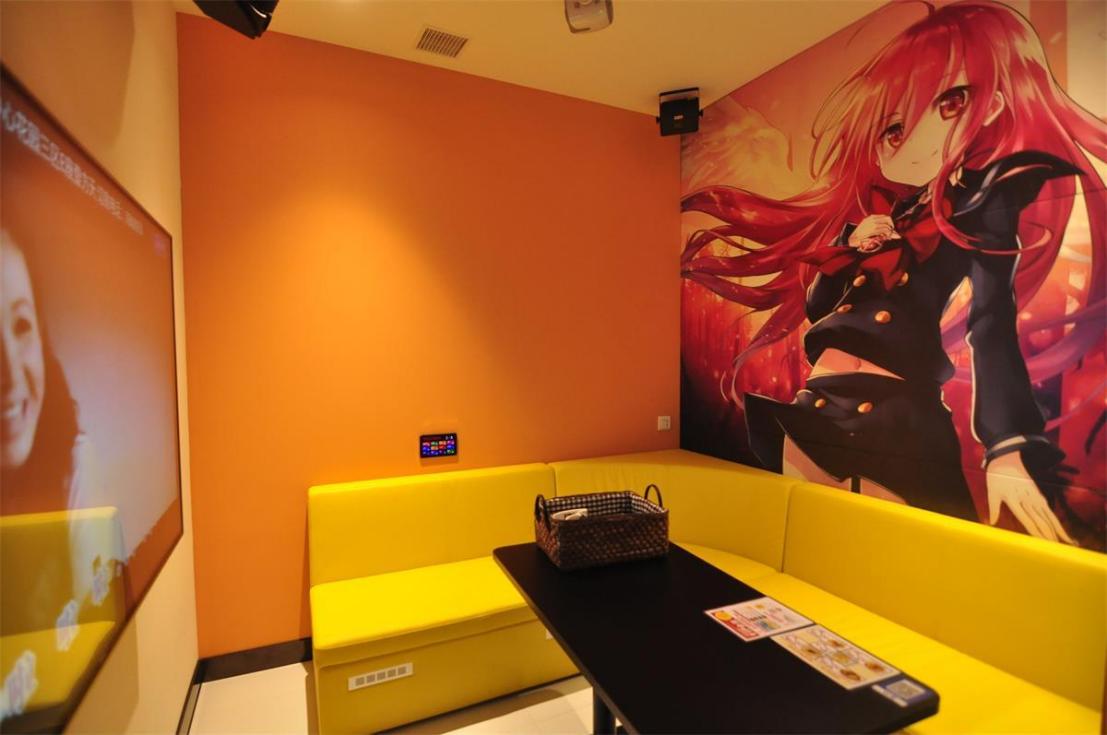 KARAOKE區(qū)域,卡拉OK包廂設有動漫、和風、美式風等不同主題背景,客人可以按照個人喜好或心情選擇喜歡的房間。不同包廂有著風格各異的投影和舞臺,這里也可以舉辦生日會和公司社員團建活動。飲食區(qū)提供的披薩、熱狗、意大利面等小食和飲料都可以帶進包廂,讓邊吃著美食邊舉行派對成為現(xiàn)實。