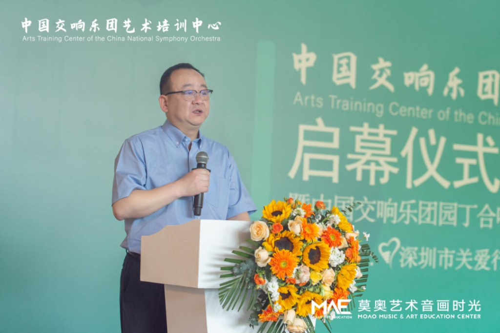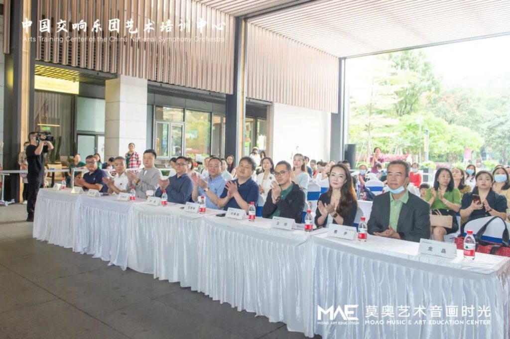 中國交響樂團(tuán)副團(tuán)長尹波、南山區(qū)文化廣電旅游體育局黨組成員、副局長任艷峰、中國交響樂團(tuán)藝術(shù)培訓(xùn)中心主任王曉柯、中國交響樂團(tuán)藝術(shù)培訓(xùn)中心深圳負(fù)責(zé)人韓仕英、華僑城歡樂時光項目負(fù)責(zé)人鄧皋峰、深圳市關(guān)愛行動基金會副秘書長魏平、莫奧藝術(shù)音畫時光校長王婷、莫奧藝術(shù)音畫時光行政總監(jiān)曹克等嘉賓出席了開幕儀式。