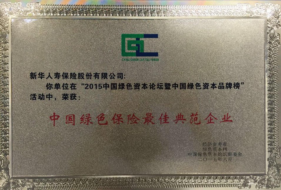中國綠色保險最佳典范企業(yè)