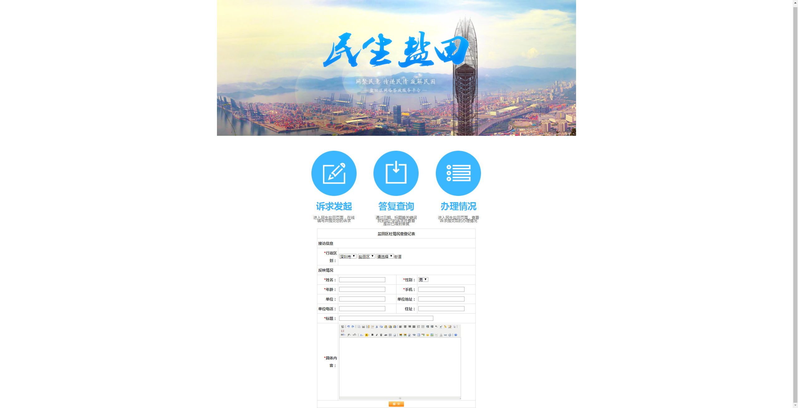 (1)進(jìn)入民生鹽田頁(yè)面,在線填寫并提交您的訴求