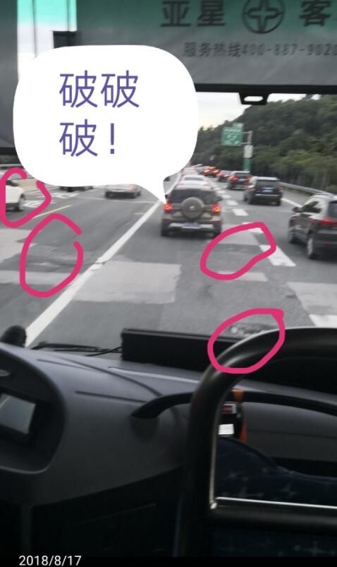 市民syh19667288于6月17日在深圳論壇發(fā)帖《梅觀高速,你的路面質量不如我家小縣城啊》,用一組經(jīng)過標注的照片展示了梅觀高速路多處路面破損的情況。
