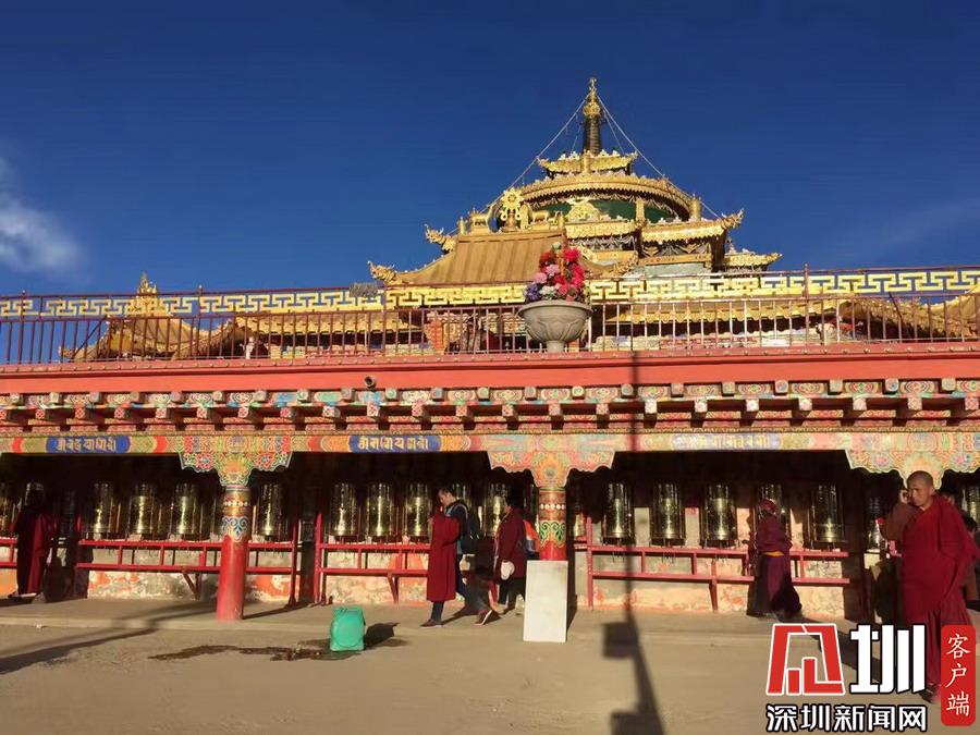 谷底和山梁上分布著幾座寺廟和佛堂,裝飾考究,金碧輝煌。李仁奇攝