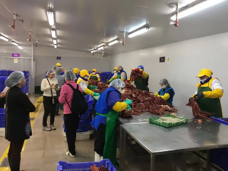 智利蜘蛛蟹加工基地。李仁奇攝