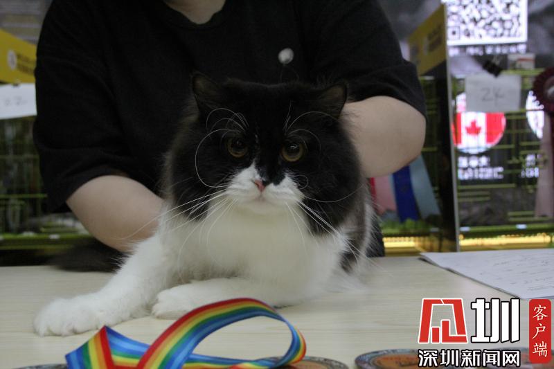 裁判正在向觀眾展示參賽貓咪。
