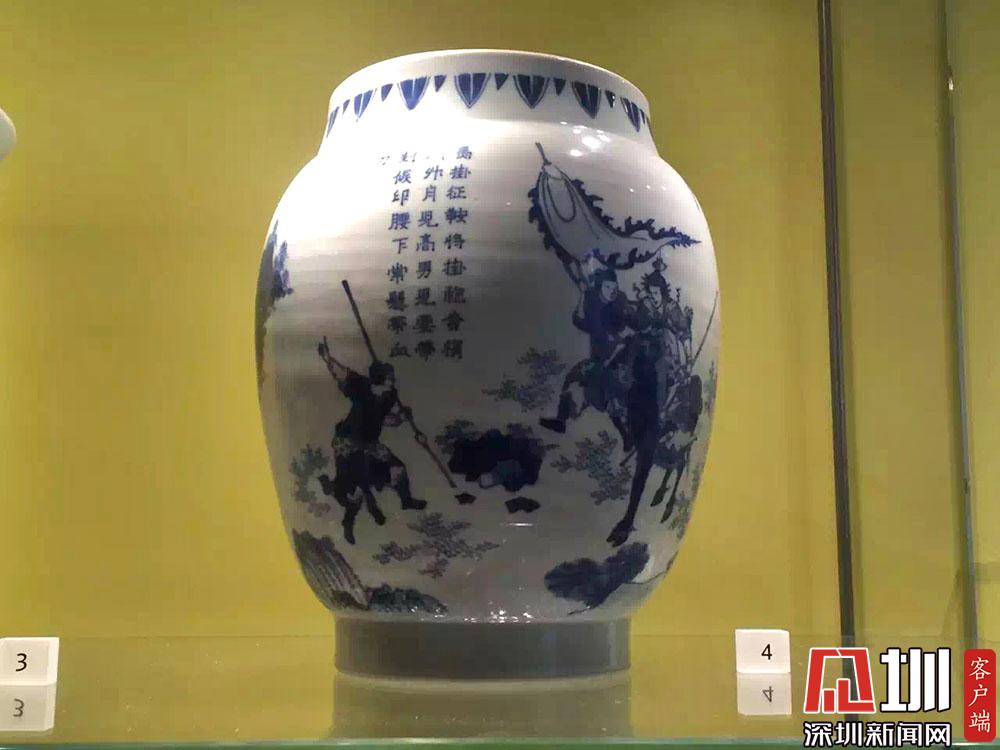 一件青花瓷瓶上有如下配圖詩(shī)文:“馬褂征鞍將褂袍,柳梢門(mén)外月兒高;男兒要帶封侯印,腰下常懸?guī)а??!?/p>