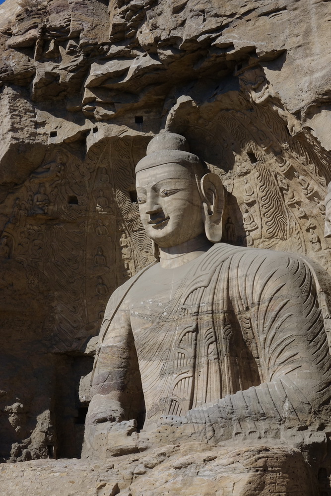 從外面看云岡石窟,經(jīng)歷1500年時光的風(fēng)雨侵襲,依然保持著挺拔的姿態(tài),不得不佩服古人當(dāng)時的建筑工藝。