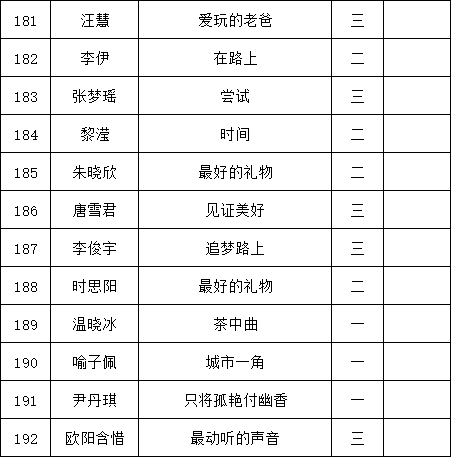 自2021年1月,活動(dòng)征稿啟動(dòng)以來(lái),獲得了深圳市廣大中小學(xué)生、教師、文學(xué)愛(ài)好者的熱烈響應(yīng)積極參與,吸引了深圳百余所學(xué)校的上萬(wàn)人關(guān)注報(bào)名?,F(xiàn)公布福田區(qū)梅山中學(xué)晉級(jí)復(fù)賽名單如下: