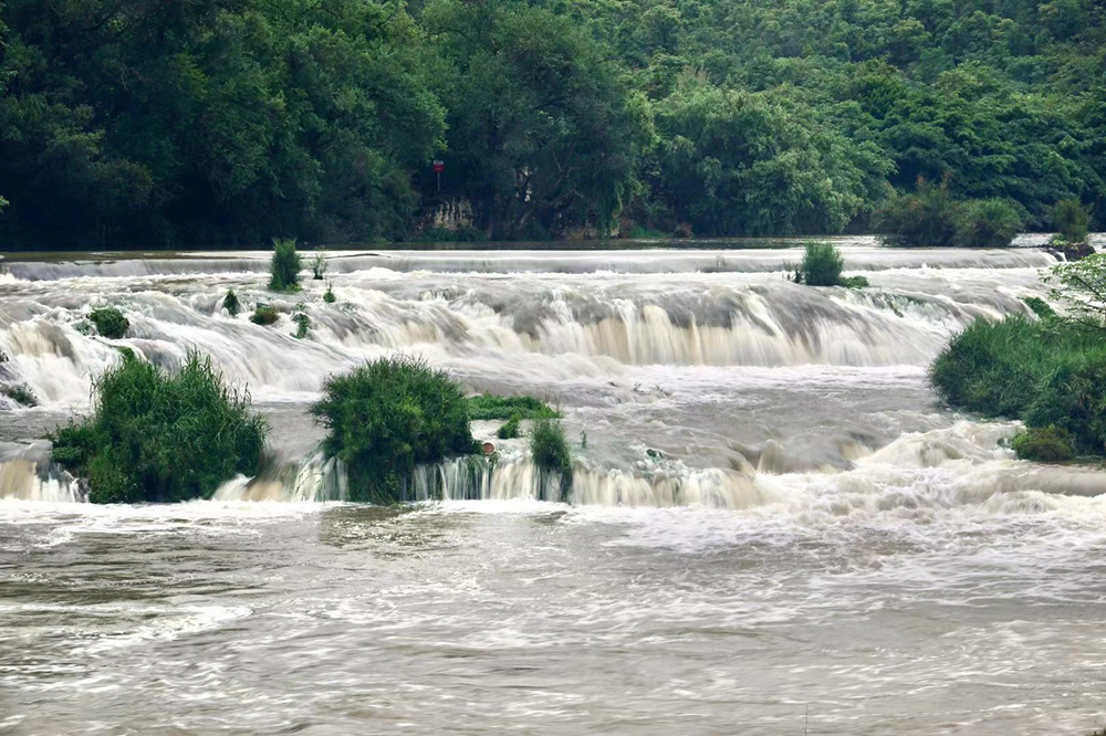 水大時,瀑布濺珠飛灑到100多米高的黃果樹街上,兩三里外能聽到雷鳴般的響聲。李仁奇 攝