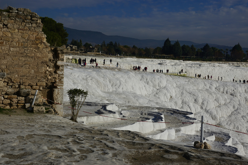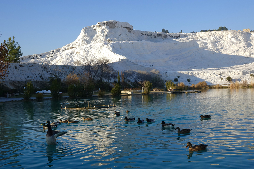 在這里你會(huì)聽到這樣一個(gè)傳說:曾經(jīng),牧羊人安迪密恩為了和希臘月神瑟莉妮幽會(huì),竟然忘記了擠羊奶,致使羊奶恣意橫流,蓋住了整座丘陵,這便是土耳其民間有關(guān)棉花堡的美麗來由。李仁奇 攝
