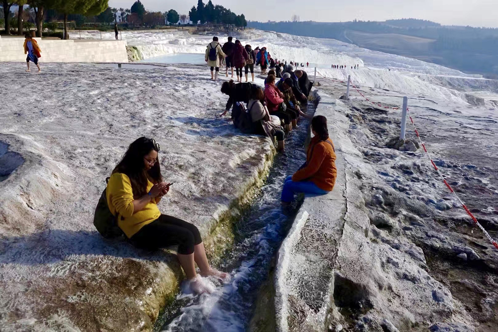 進(jìn)入棉花堡,一定要赤腳,以防鞋底磨損石灰?guī)r。嗯,有點(diǎn)硌腳,就當(dāng)一次腳底按摩。李仁奇 攝