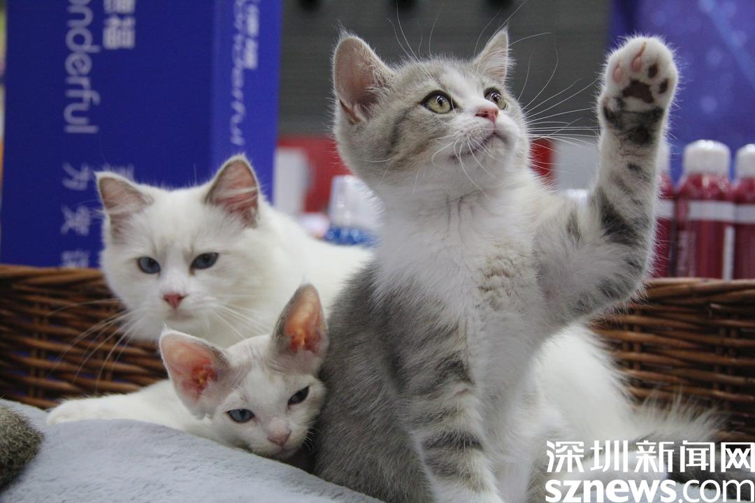 參展商展示自家高顏值貓咪,貓咪與游客互動(dòng)。