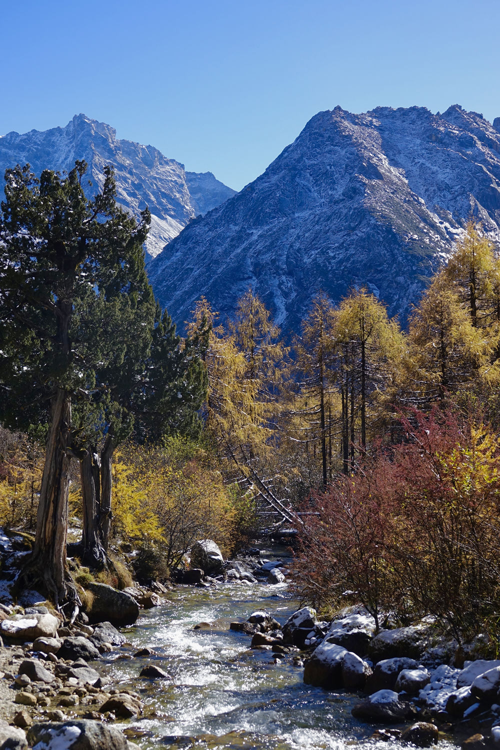 從雪山上流淌下來(lái)的小溪,在雪山和藍(lán)天的映襯下,分外漂亮。李仁奇 攝