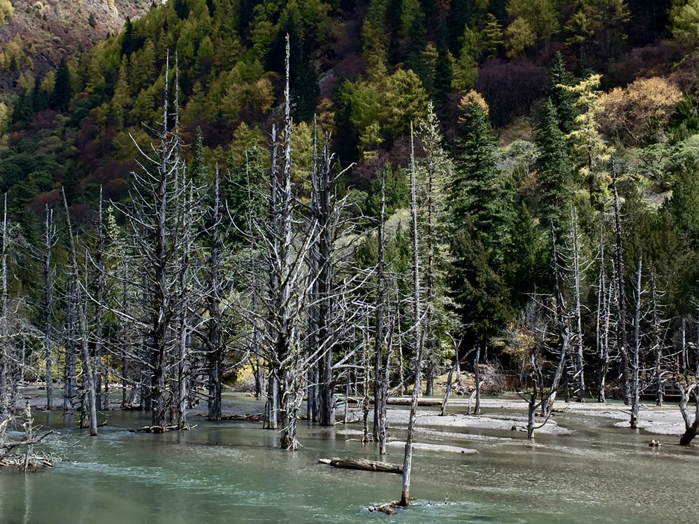 枯樹灘,因地質(zhì)災(zāi)害導(dǎo)致河流改道,淹沒大片原始樹木,雜木鈣化后留下一片樹樁置于河灘,故稱“枯樹灘”。李仁奇 攝