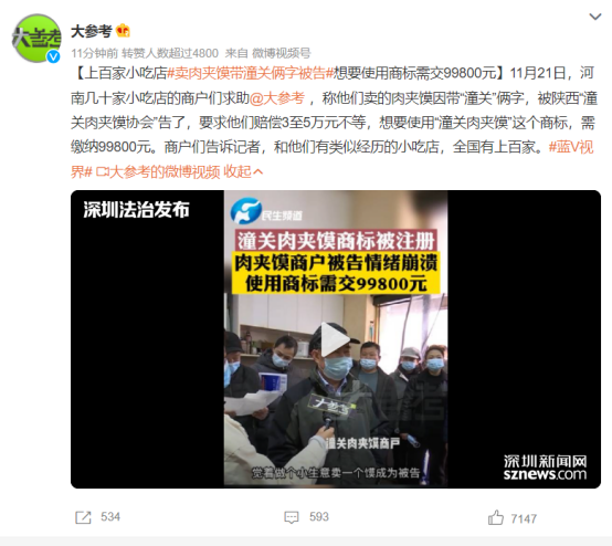 (相關(guān)報道:讓眾多店家崩潰的潼關(guān)肉夾饃商標(biāo)許可費(fèi)國家知識產(chǎn)權(quán)局回應(yīng)了
