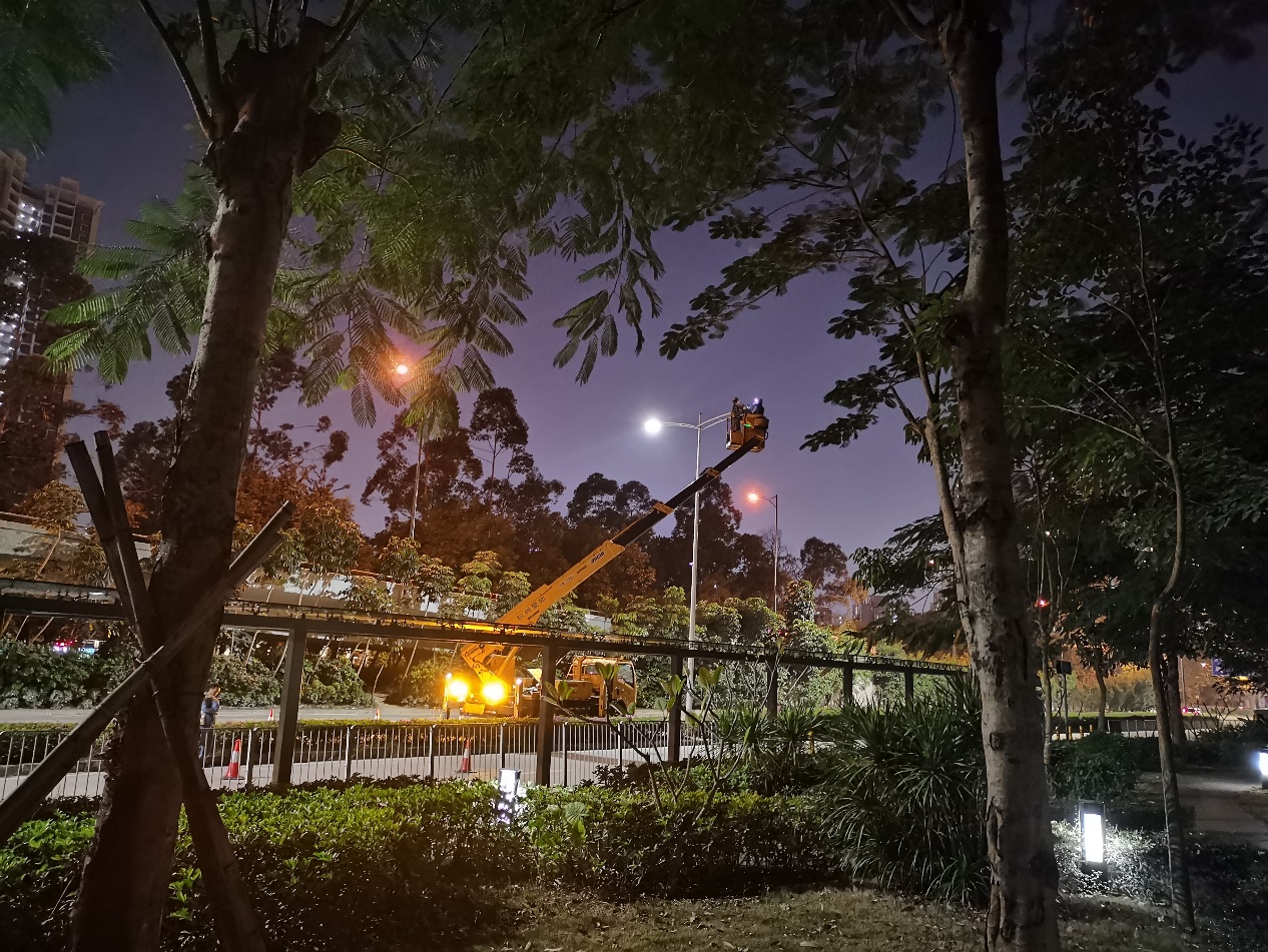 11月25日晚上8點,記者在現(xiàn)場看到,該路段之前幾處破損、不亮的景觀燈已換好燈泡燈箱。同時,在該路段外側(cè)馬路上,有著身穿“深圳照明”馬甲的工作人員正在對路燈進(jìn)行更換檢修?!斑@個之前有一些壞掉的或者不那么亮的燈泡,我們換新的之后,亮度會提升一些,也會對小路的光源進(jìn)行一個很好地補充”。相關(guān)工作人員告訴記者,后續(xù)也可能會對小路的景觀燈進(jìn)行升級,改換成高的路燈,這還需要下一步的規(guī)劃設(shè)計。