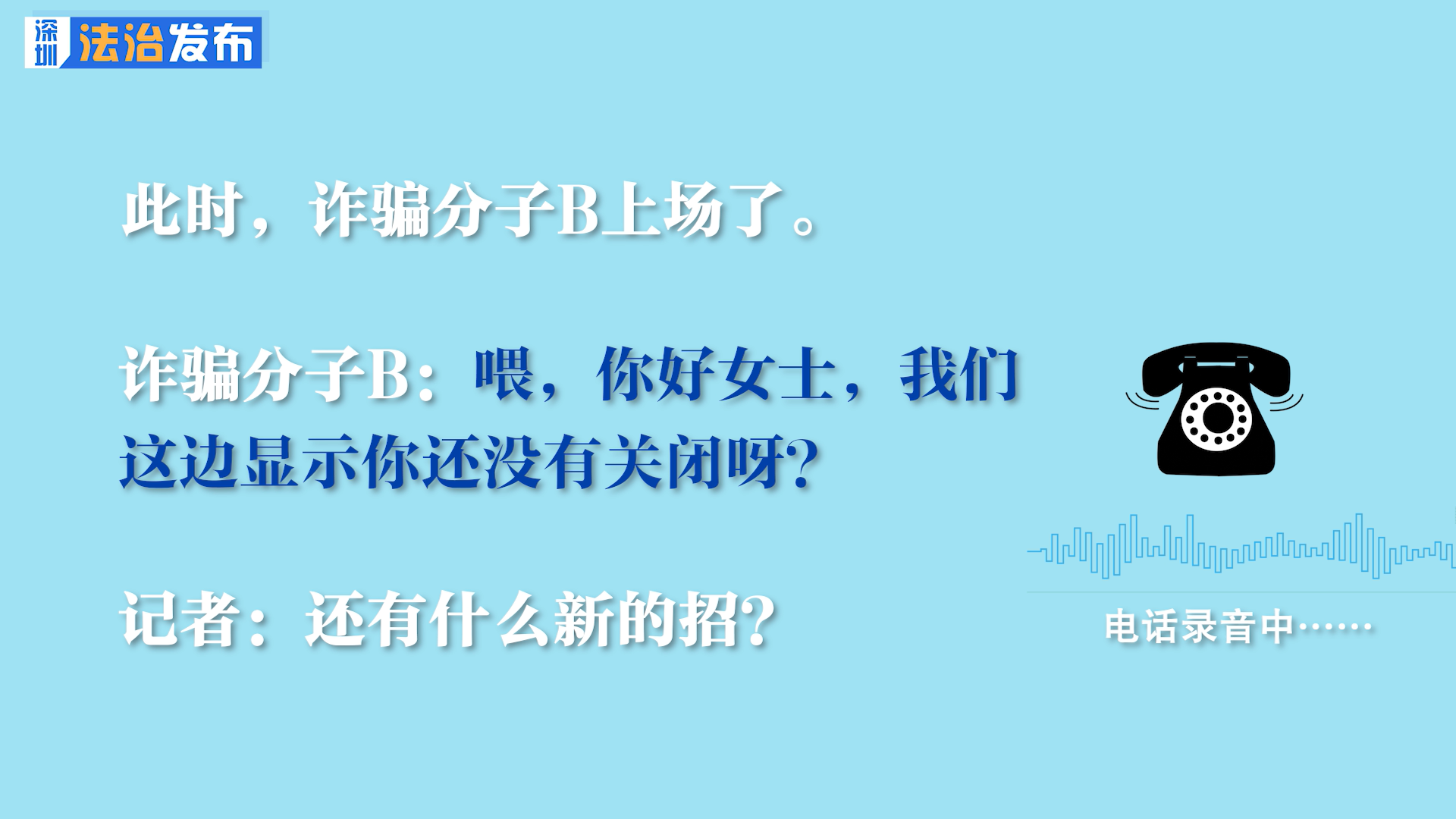 詐騙分子A:(語速很快)但是我們這邊系統(tǒng)顯示你沒有關(guān)閉成功啊!如果關(guān)閉成功的話……