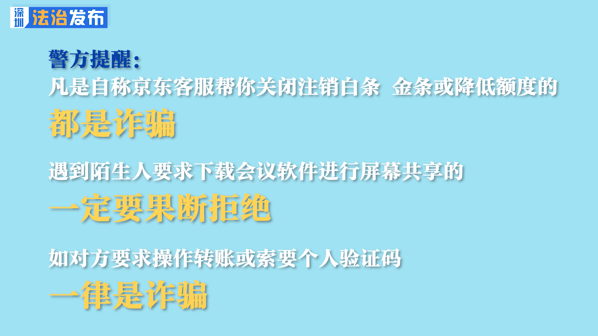 凡是自稱京東客服幫你關(guān)閉注銷白條、金條,或降低額度的,都是詐騙;