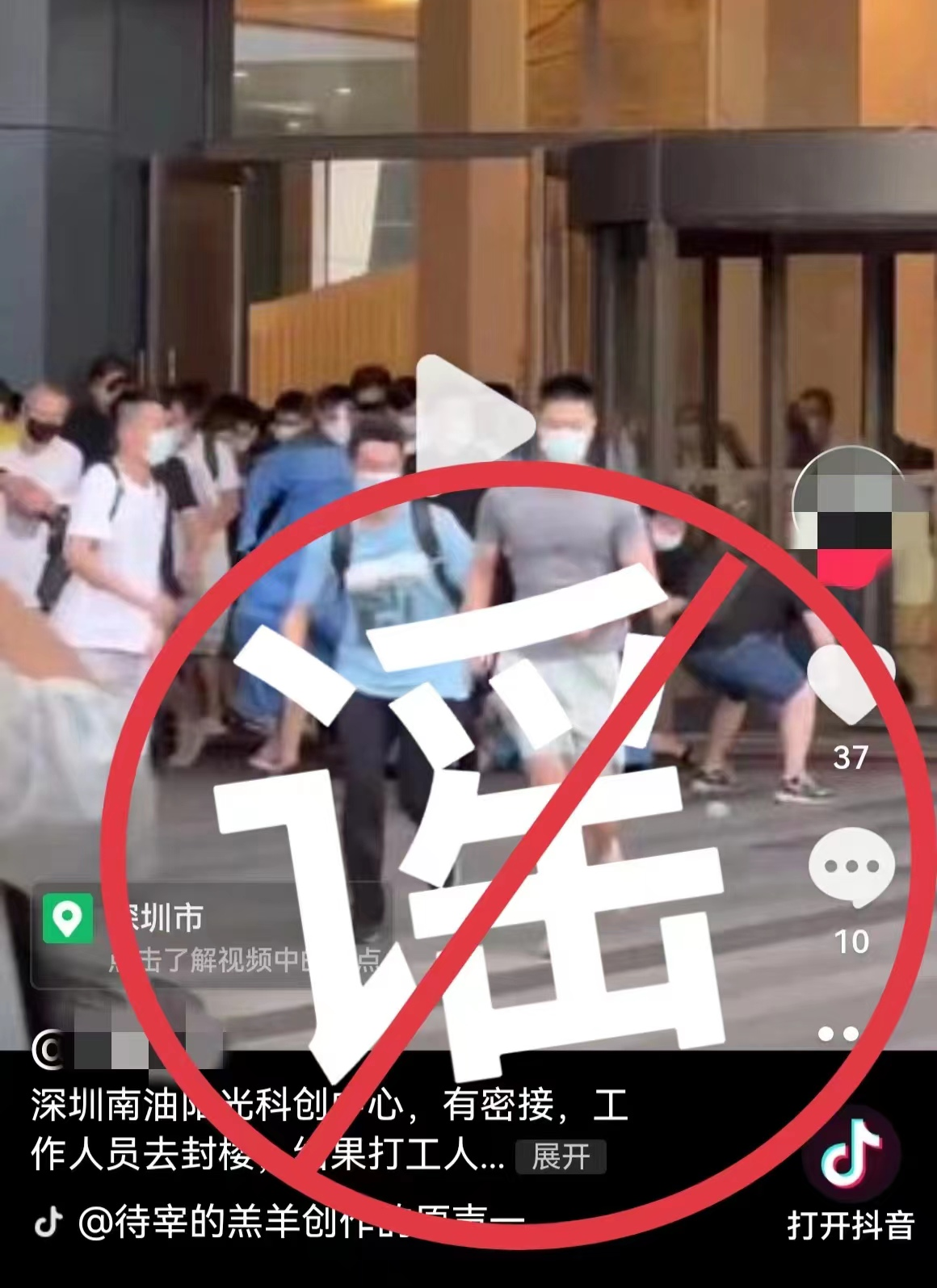 2022-08-12網(wǎng)傳深圳市南山區(qū)南油街道陽光科創(chuàng)中心有密接者,人們紛紛沖出大樓?辟謠:消息不實